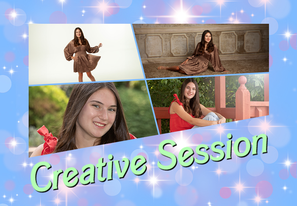 Inside and outside studio (weather permitting) we get creative in showing your personality, leaving you with 30+ great final images to view/purchase from in your online gallery.